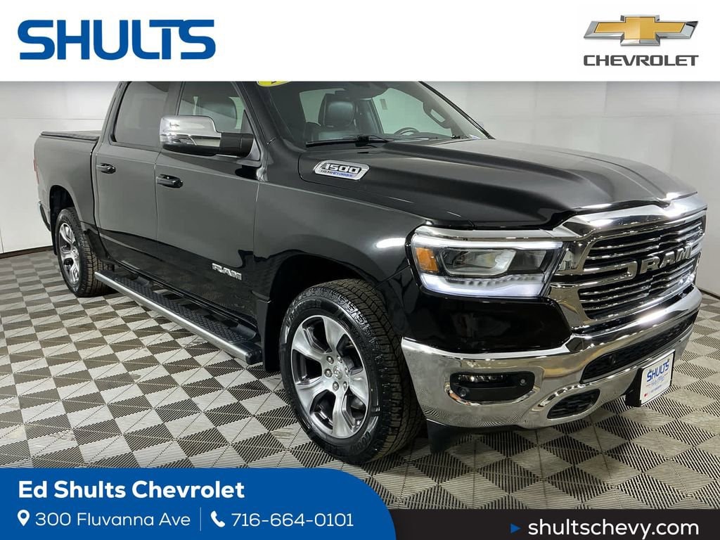 2023 Ram 1500 Laramie 4WD HEMI 5.7L V8 Multi Displacement VVT eTorque 8-Speed Automatic Diamond Black Crystal Pearlcoat CARFAX One-Owner.